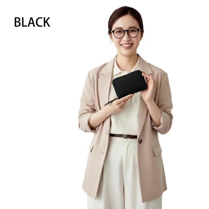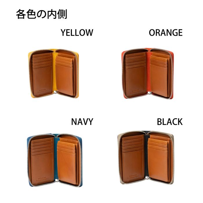 素材本来の風合いを活かした、洗練されたシンプルデザインのラウンドファスナー・ハーフ財布。無駄を削ぎ落とした佇まいが、上質な素材感をより一層引き立てます。