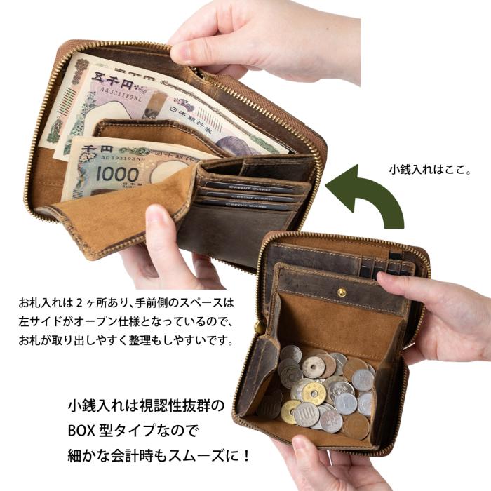 折り財布 二つ折り 折財布 ラウンドファスナー ミドル財布 ハーフ財布 ボックス型小銭入れ BOX型小銭入れ カード メンズ レディース ユニセックス 紳士用 婦人用 本革 牛革 天然皮革 クーズー クードゥー アンテロープ イギリス 英国 イギリスレザー 英国レザー 革財布 革小物 シンプル ベーシック カジュアル 高級感 かっこいい おしゃれ 大人 ブランド 経年変化 エイジング 使いやすい ワイルド バギーポート BAGGY PORT