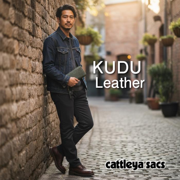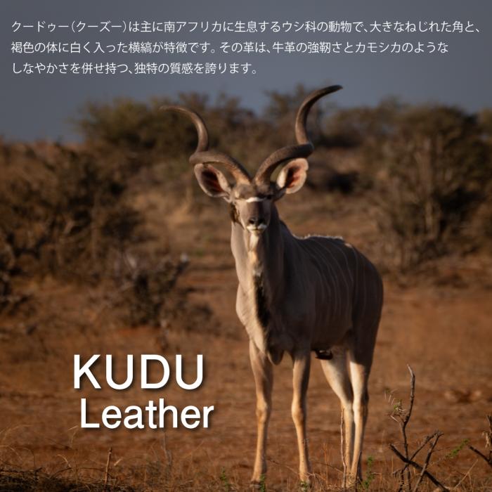 自然で育まれた野生特有の「荒々しさ」と「美しさ」を兼ね備えたクーズーレザーはナチュラルな風合いと革の奥深さをがあり、長く使えば使うほどより特別な表情を魅せてくれます。