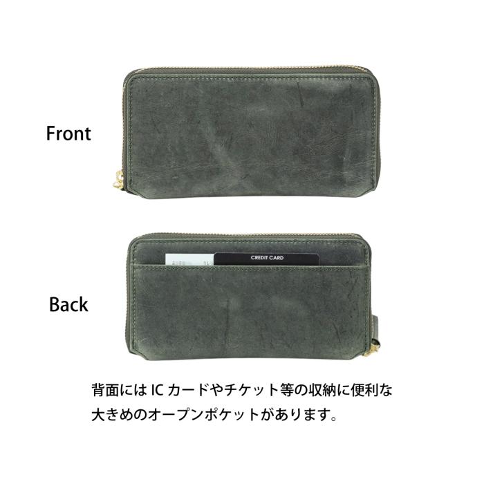 左右に分かれた収納で中身が一目で確認しやすく整理しやすい大容量のラウンドファスナー長財布です。