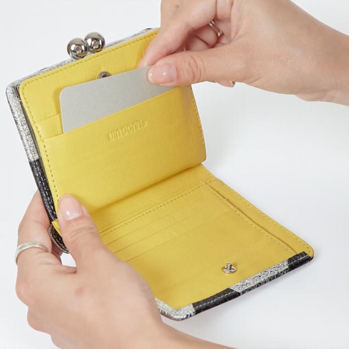 二つ折りで小銭入れ部分が大きく開き、出し入れがしやすいコンパクトなお財布です。