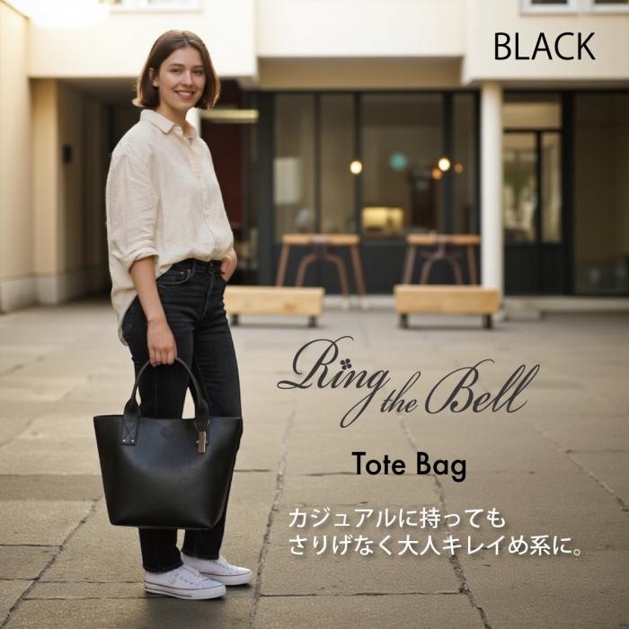 黒いトートバッグだけバイカラーでお洒落です。
