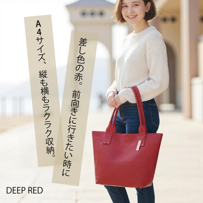 こちらのバッグはディープレッドなので、落ち着いた赤なので