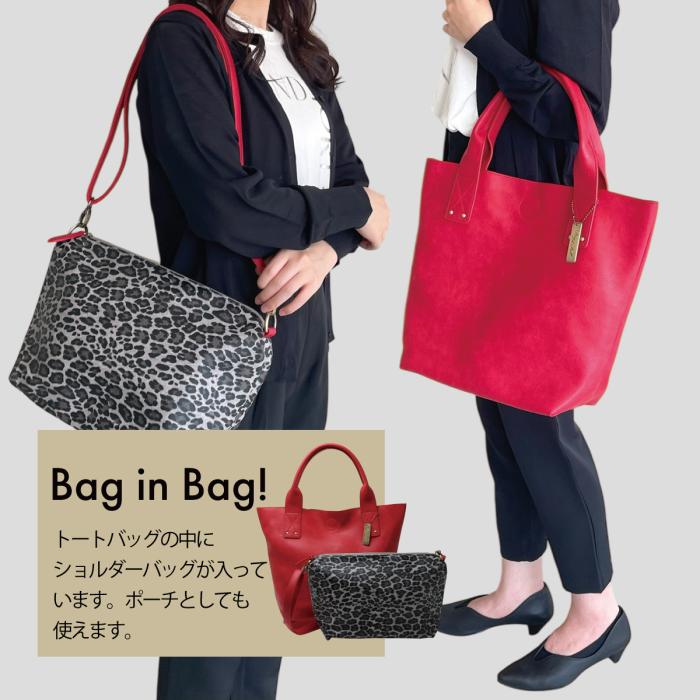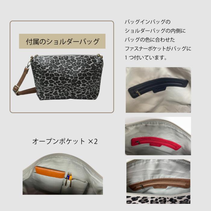 Bag in Bag!のショルダーバッグはヒョウ柄。