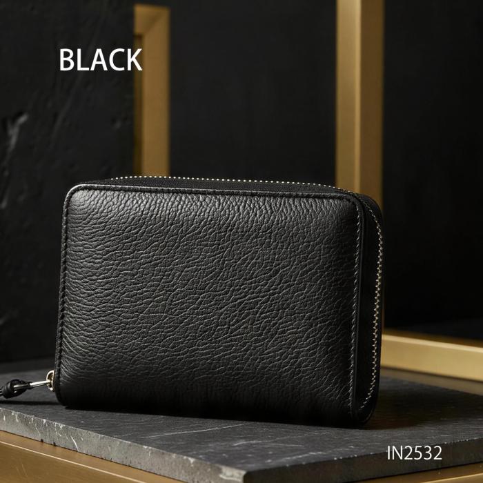 手のひらに収まるサイズ感ながら、お札・小銭・カードを効率よく収納できる設計が魅力です。上品なシボ感のあるレザーを採用し、オンオフ問わず使える洗練されたデザインに仕上げました。