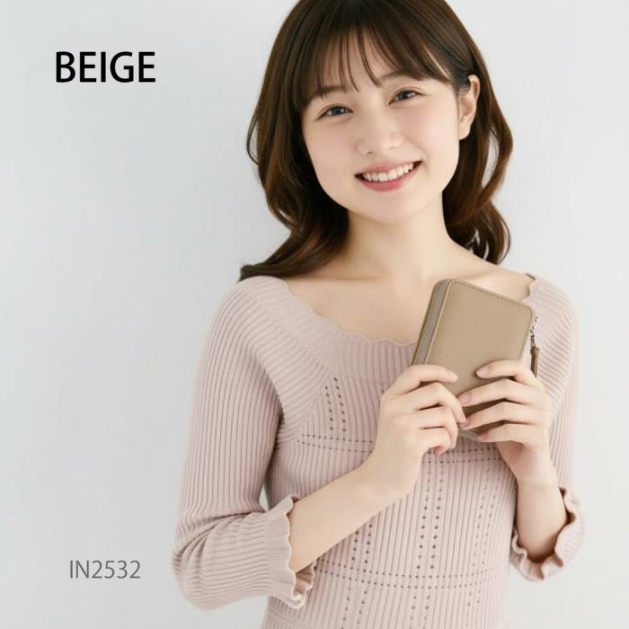 多数のカードポケットを備えつつ、軽やかな持ち心地とL字ファスナーで厚みを抑えたスリムな仕様で、小さめのバッグにもすっきりと収まりやすく、オンオフ問わず活躍するサイズ感となっています。