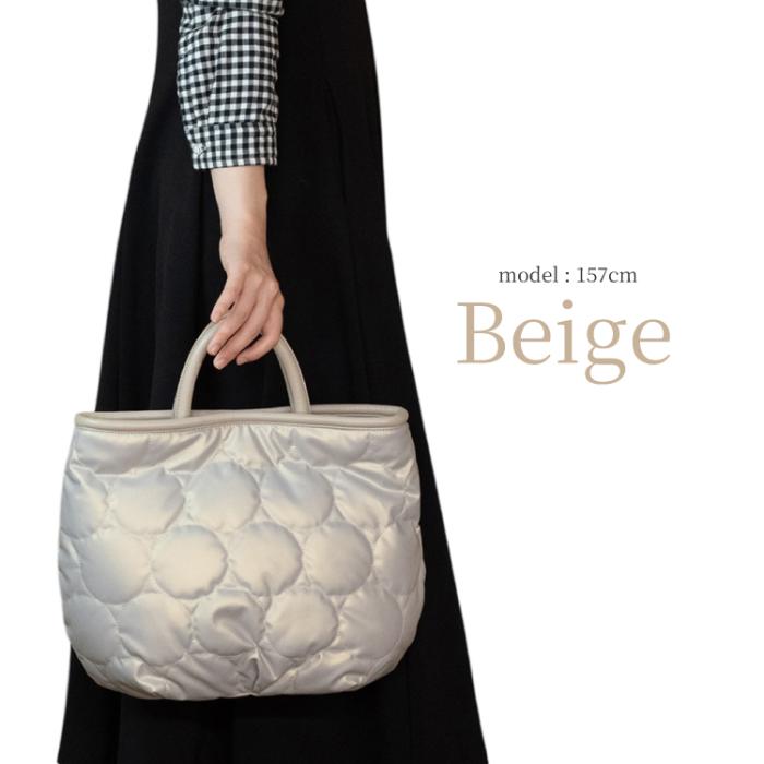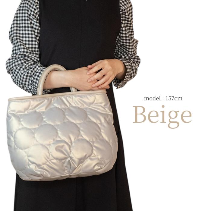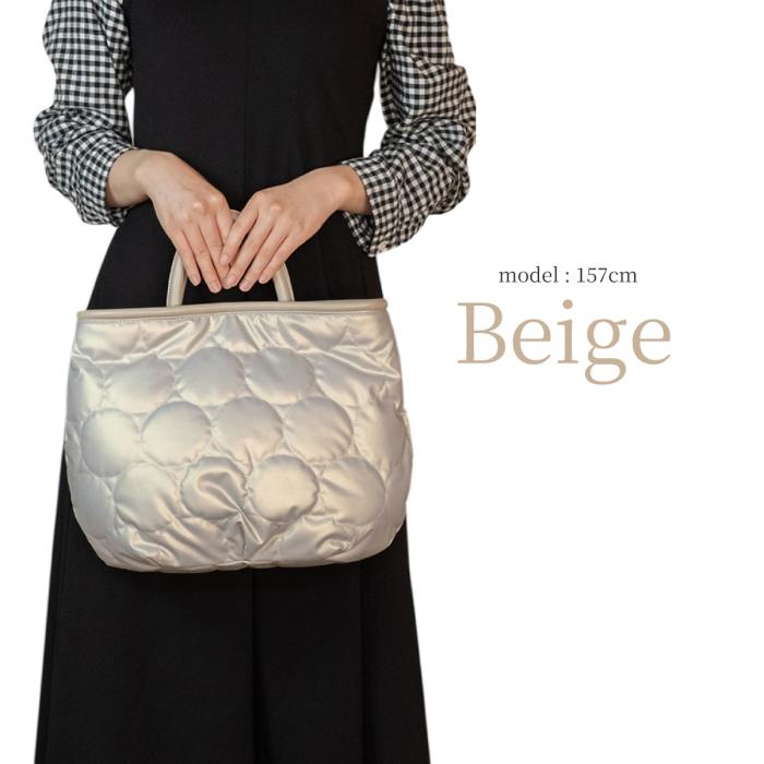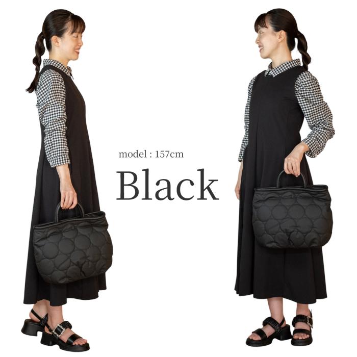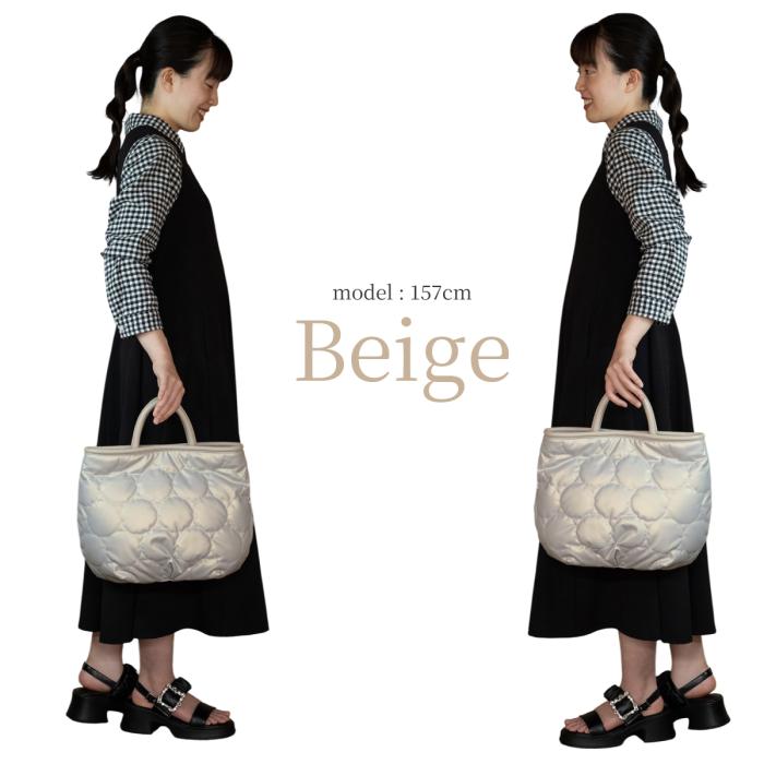 A4サイズが横向きにぴったり収まるサイズのトートバッグでマチ幅もあるので、長財布やポーチなど必需品の他に、ペットボトルや折り畳み傘も入る収納量です。
